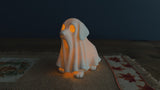 Bring a touch of spooky cuteness to your Halloween décor with this 3D printed Ghost Dog decoration! This adorable pup is dressed in a ghost outfit and lights up from within, creating a soft, eerie glow perfect for Halloween nights.